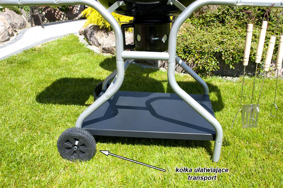 Grill wyposażony jest w dwa kółka umożliwiające przemieszczanie