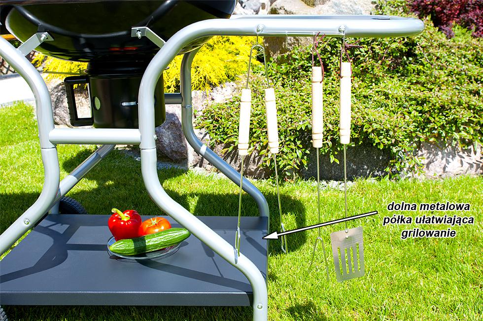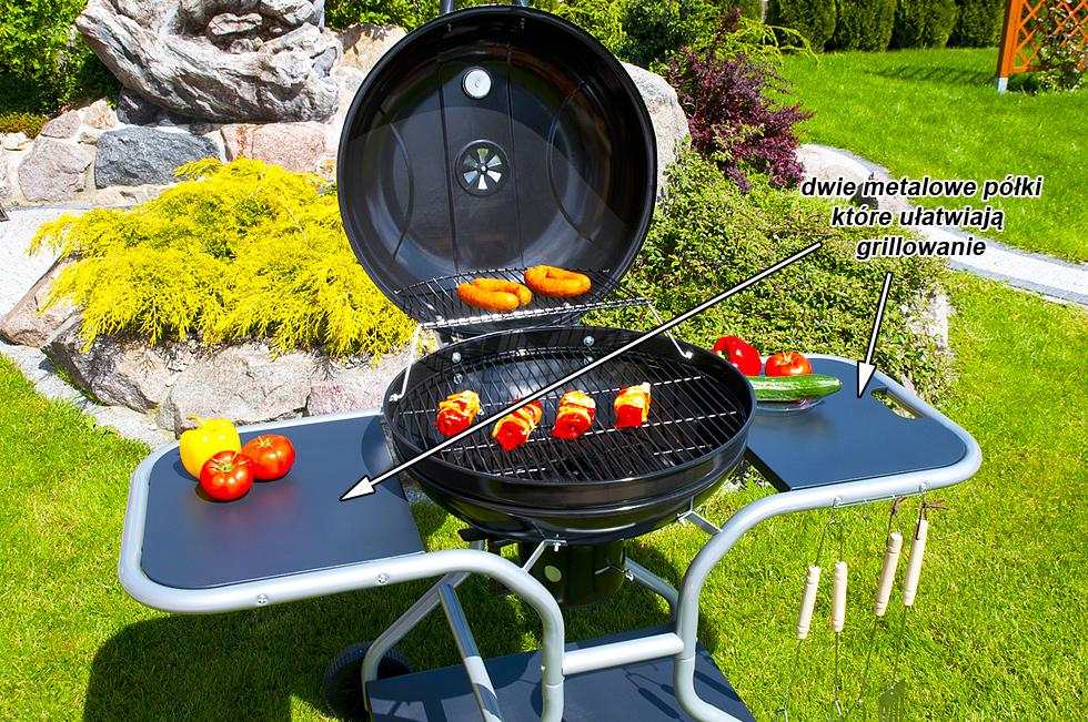 Dwie półki które są zamontowane z grillu sprawiają dużą wygodę w użytkowaniu