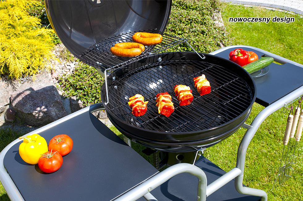 Grill wyposażowy jest w 2 metalowe półki