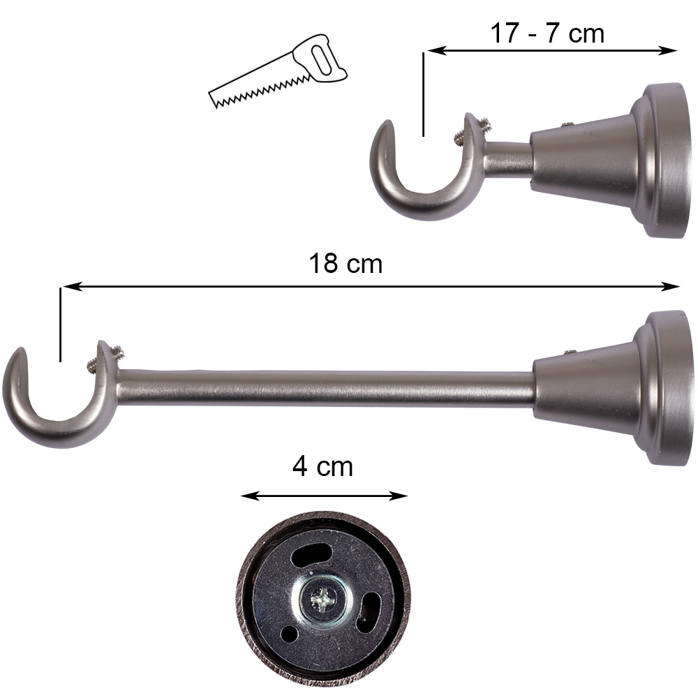 Wspornik karnisza o średnicy rurki fi 16 wykonany jest z metalu, pokrytego powłoką galwaniczną oraz dodatkową warstwą utwardzonego lakieru, która zapewnia doskonałą ochronę powierzchni przed ścieraniem.