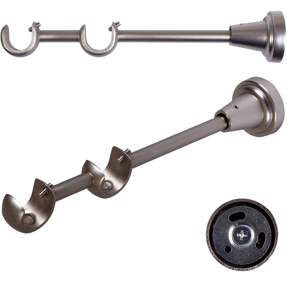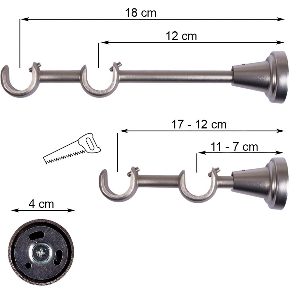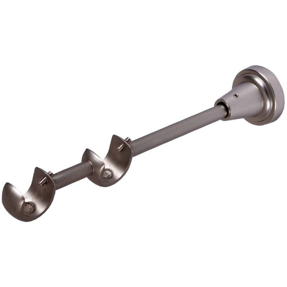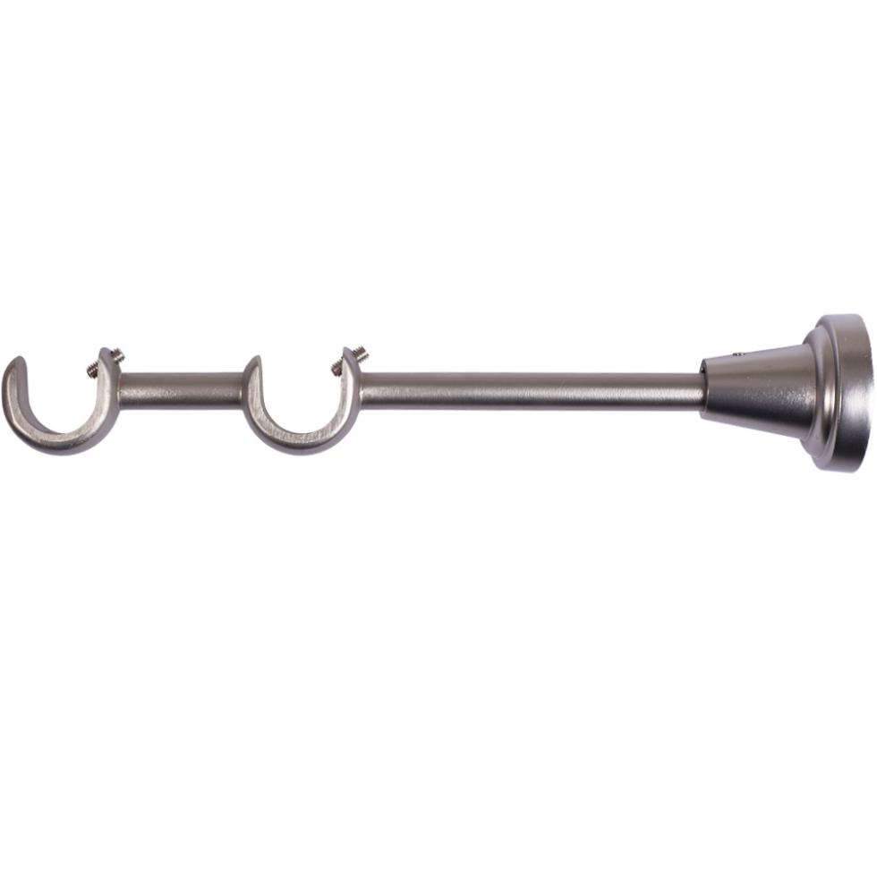 Wspornik karnisza o średnicy rurki fi 16+16 wykonany jest z metalu, pokrytego powłoką galwaniczną oraz dodatkową warstwą utwardzonego lakieru, która zapewnia doskonałą ochronę powierzchni przed ścieraniem.